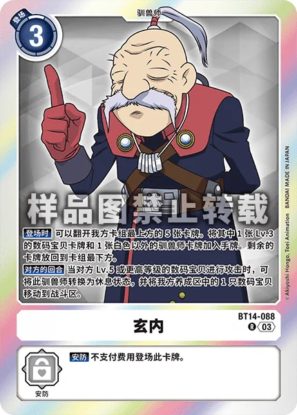 Opponent's Turn When an opponent's level 5 or higher Digimon attacks, by suspending this Tamer, move 1 of your Digimon from the breeding area to the battle area.
