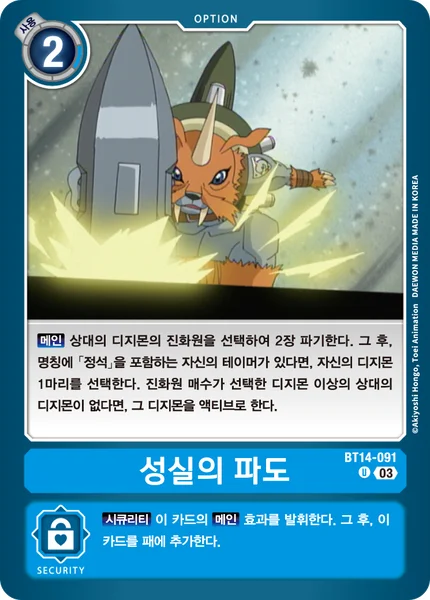 Main Trash any 2 digivolution cards from your opponent's Digimon. Then if you have a Tamer with [Joe Kido] in its name, choose 1 of your Digimon. If your opponent has no Digimon with as many or more digivolution cards as the chosen Digimon, unsuspend it.