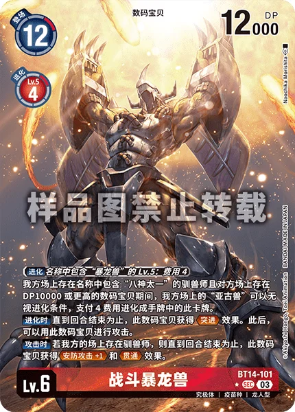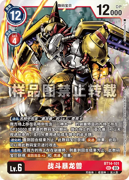 While you have a Tamer with [Tai Kamiya] in its name and your opponent has a 10000 DP or higher Digimon, any of your [Agumon] can digivolve into this card in your hand for a digivolution cost of 4, ignoring digivolution requirements.