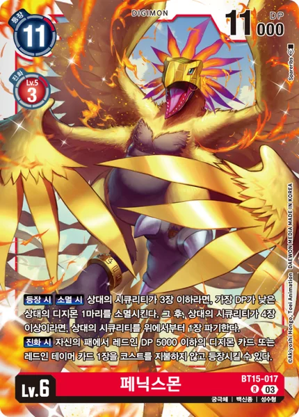 On Play On Deletion If your opponent has 3 or fewer security cards, delete 1 of their Digimon with the lowest DP. If they have 4 or more, trash the top card of their security stack.