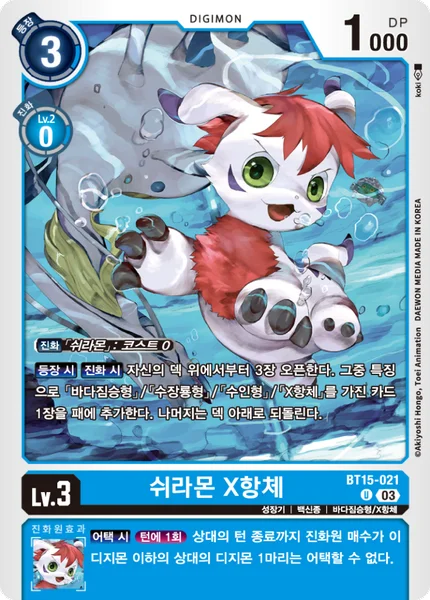 On Play When Digivolving Reveal the top 3 cards of your deck. Add 1 card with the [Sea Beast], [Plesiosaur], [Beastkin] or [X Antibody] trait among them to the hand. Return the rest to the bottom of the deck.