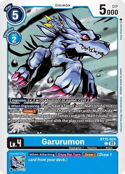 When Digivolving If you have a Tamer with [Matt Ishida] in its name, Draw 1. If you don't, you may play 1 Tamer card with [Matt Ishida] in its name from your hand with the play cost reduced by 3.