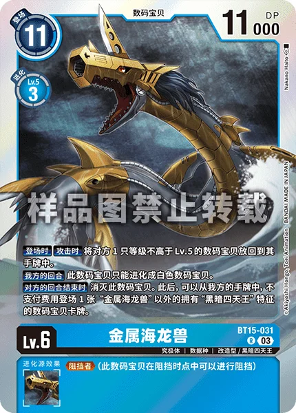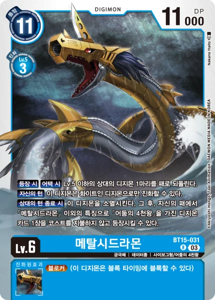 End of Opponent's Turn Delete this Digimon. Then, you may play 1 Digimon card with the [Dark Masters] trait, other than [MetalSeadramon], from your hand without paying the cost.