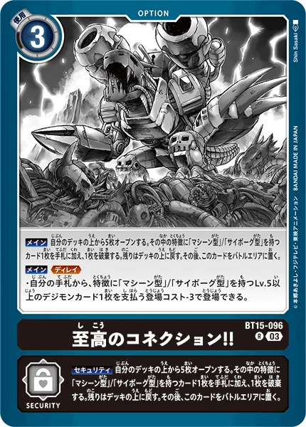 ・You may play 1 level 5 or higher Digimon card with the [Machine] or [Cyborg] trait from your hand with the play cost reduced by 3.