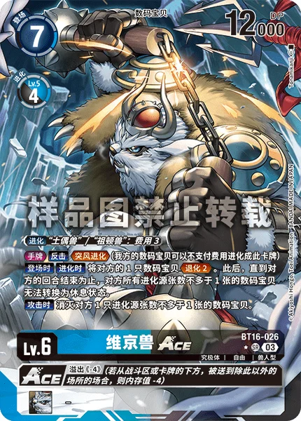 On Play When Digivolving De-Digivolve 2 1 of your opponent's Digimon. Then, none of their Digimon with 1 or fewer digivolution cards can suspend until the end of their turn.