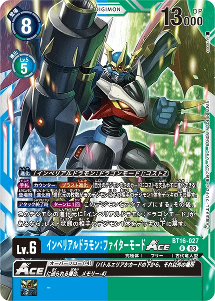 End of Attack Once Per Turn Unsuspend this Digimon. Then, if [Imperialdramon: Dragon Mode] is in this Digimon's digivolution cards, return 1 of your opponent's suspended Digimon to the bottom of the deck.