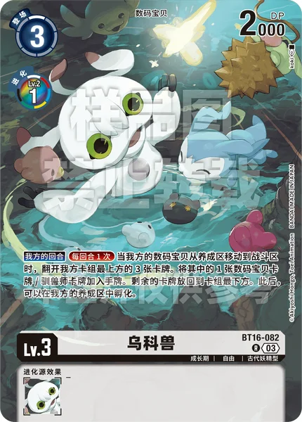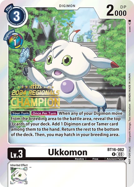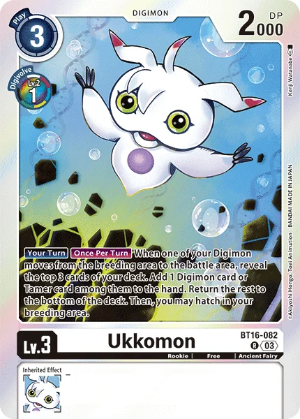 Your Turn Once Per Turn When any of your Digimon move from the breeding area to the battle area, reveal the top 3 cards of your deck. Add 1 Digimon card or Tamer card among them to the hand. Return the rest to the bottom of the deck. Then, you may hatch in your breeding area.