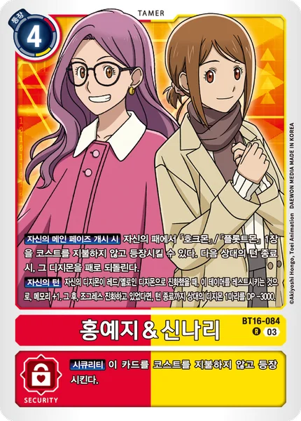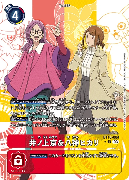Your Turn When one of your Digimon digivolves into a red or yellow Digimon, by suspending this Tamer, gain 1 memory. If DNA digivolving, 1 of your opponent's Digimon gets -3000 DP for the turn.