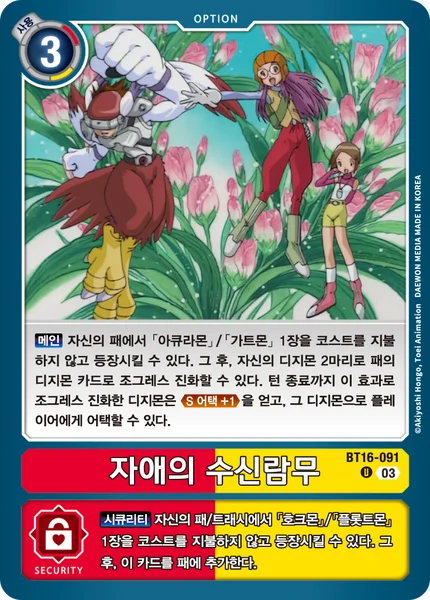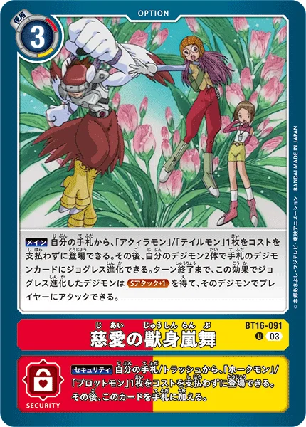 Security You may play 1 [Hawkmon] or [Salamon] from your hand or trash without paying the cost. Then, add this card to the hand.