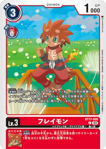 On Play Reveal the top 3 cards of your deck. Add 1 card with the [Hybrid] or [Ten Warriors] trait and 1 Tamer card with inherited effects among them to the hand. Return the rest to the bottom of the deck.