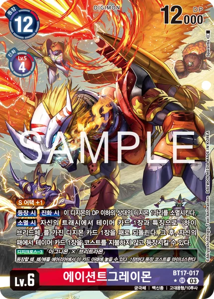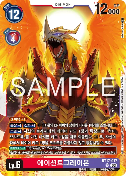 DigiXros -3 [Agunimon]×[BurningGreymon] When you would play this card, you may place specified cards from your hand/battle area under it. Each placed card reduces the play cost.