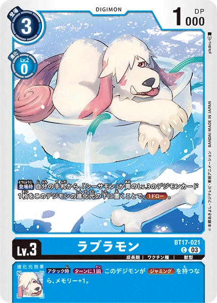 On Play By placing 1 [Seasarmon] or 1 level 3 blue Digimon card from your hand as this Digimon's bottom digivolution card, Draw 1.