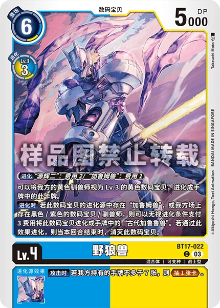 When Digivolving If [KendoGarurumon] is in this Digimon's digivolution cards or you have a black or purple Digimon or Tamer, this Digimon may digivolve into [AncientGarurumon] in the hand for a digivolution cost of 3, ignoring digivolution requirements. If this effect digivolved, delete this Digimon at the end of the turn.