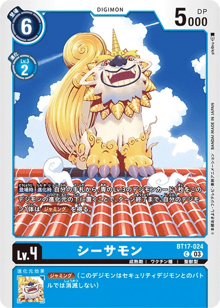 On Play When Digivolving By placing 1 level 3 blue Digimon card from your hand as this Digimon's bottom digivolution card, 1 of your Digimon gains Jamming for the turn.