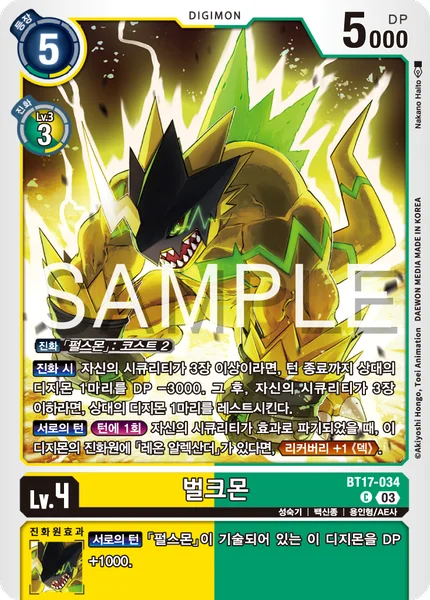 When Digivolving If you have 3 or more security cards, 1 of your opponent's Digimon gets -3000 DP for the turn. If you have 3 or fewer, suspend 1 of your opponent's Digimon.