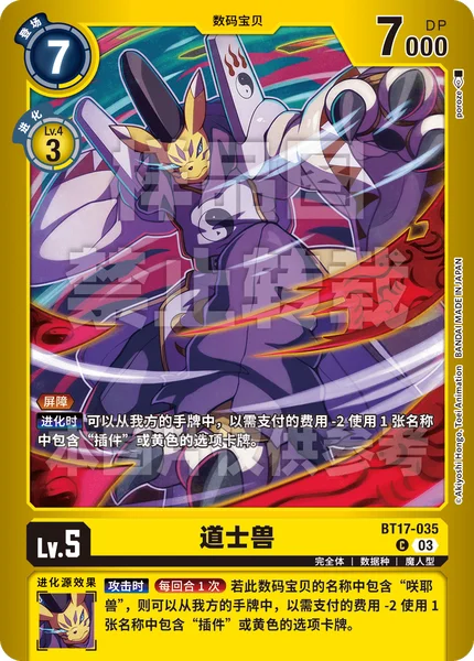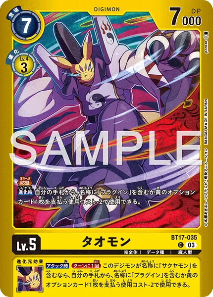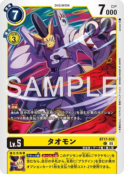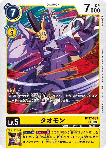 When Digivolving You may use 1 Option card that is yellow or has [Plug-In] in its name from your hand with the use cost reduced by 2.