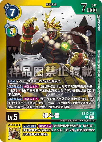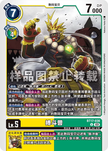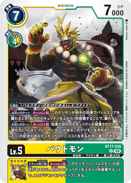 All Turns Once Per Turn When an effect trashes from your security stack, this Digimon with [Leon Alexander] in its digivolution cards may digivolve into a Digimon card with [Pulsemon] in its text in the hand without paying the cost.
