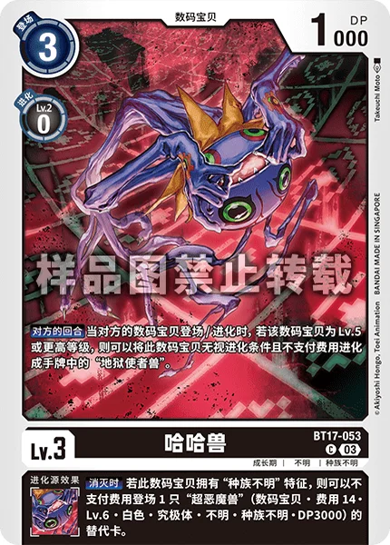 On Deletion If this Digimon had the [Unidentified] trait, you may play 1 [Diaboromon] Token without paying the cost. (Digimon/Cost 14/Lv. 6/White/Mega/Unknown/Unidentified/3000 DP)