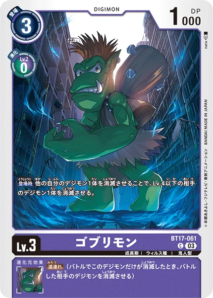 On Play By deleting 1 of your other Digimon, delete 1 of your opponent's level 4 or lower Digimon.