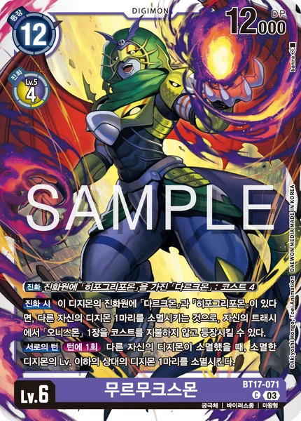 When Digivolving If [Darcmon] and [HippoGryphonmon] are in this Digimon's digivolution cards, by deleting 1 of your other Digimon, you may play 1 [Ornismon] from your trash without paying the cost.
