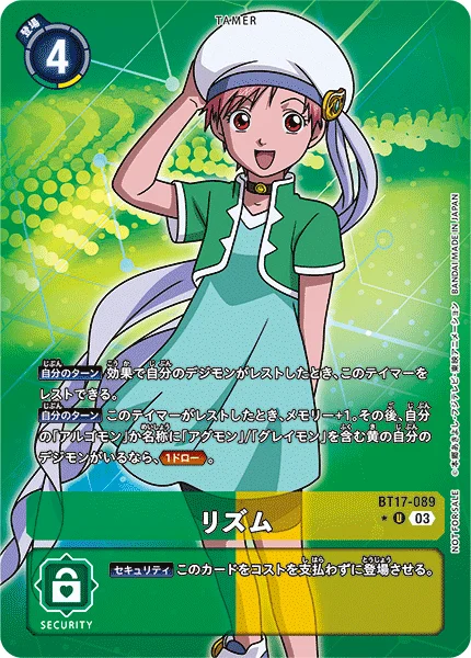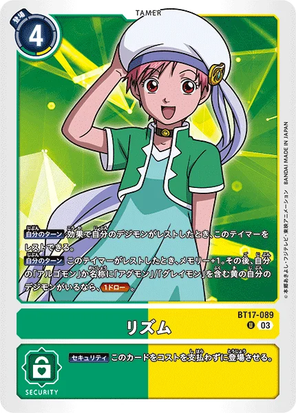 Your Turn When this Tamer becomes suspended, gain 1 memory. Then, if you have [Argomon] or a yellow Digimon with [Agumon] or [Greymon] in its name, Draw 1.