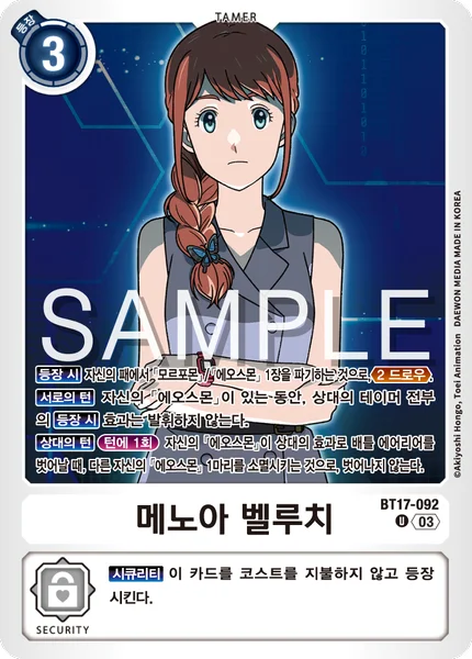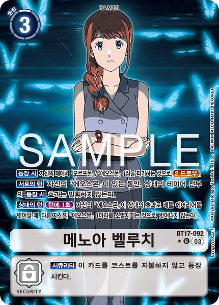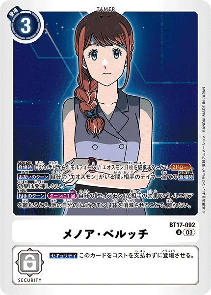 On Play By trashing 1 [Morphomon] or [Eosmon] in your hand, Draw 2. All Turns While you have [Eosmon], none of your opponent's Tamers' On Play effects activate.