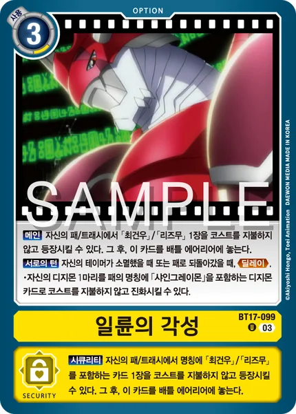 All Turns When one of your Tamers is deleted or returned to the hand, Delay. ・1 of your Digimon may digivolve into a Digimon card with [ShineGreymon] in its name in the hand without paying the cost.