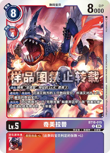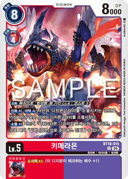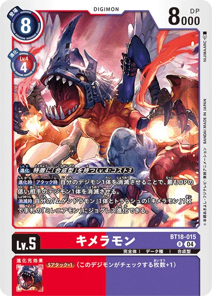You can DNA digivolve into [Millenniummon] from your hand by using your [Machinedramon] in the battle area and your [Kimeramon] in the trash.