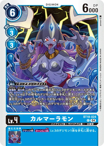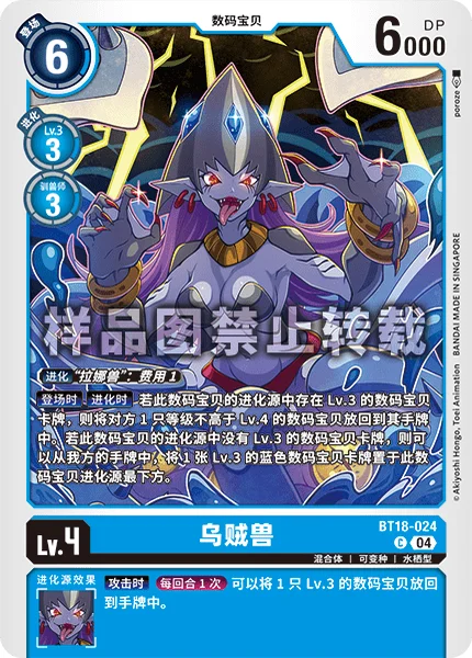 On Play When Digivolving If level 3 Digimon cards are in this Digimon's digivolution cards, return 1 of your opponent's level 4 or lower Digimon to the hand. If such aren't, you may place 1 blue level 3 Digimon card from your hand as this Digimon's bottom digivolution card.