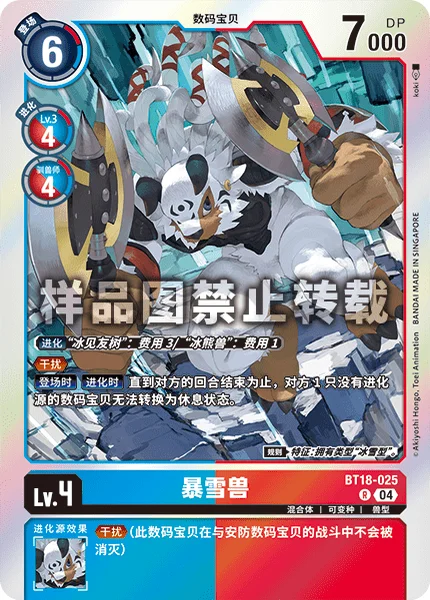 On Play When Digivolving Until the end of your opponent's turn, 1 of their Digimon with no digivolution cards can't suspend. Rule Trait: Has [Ice-Snow] Type.