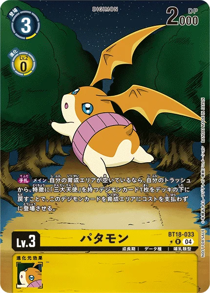 Hand Main If your breeding area is empty, by returning 1 Digimon card with the [Three Great Angels] trait from your trash to the bottom of the deck, play this Digimon card into the breeding area without paying the cost.