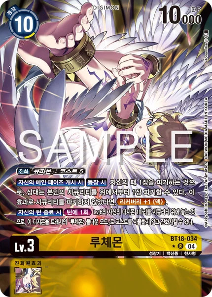 Start of Your Main Phase On Play By trashing 1 card in your hand, your opponent may trash their top security card. If this effect didn't trash, Recovery +1 ≪Deck≫. End of Your Turn Once Per Turn By placing 1 of your level 6 Digimon as the top security card, this Digimon may digivolve into [Lucemon: Chaos Mode] in your trash without paying the cost.