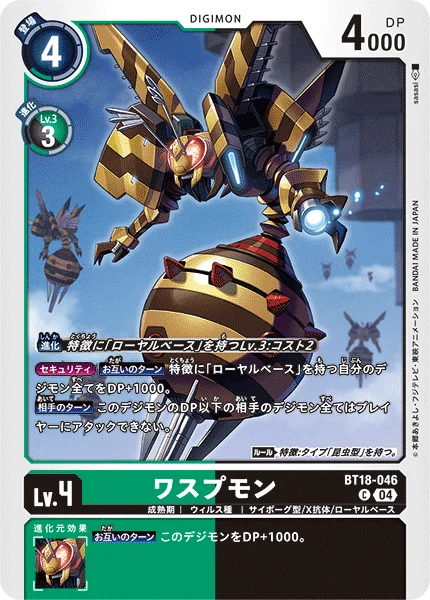 Opponent's Turn None of your opponent's Digimon with as much or less DP as this Digimon can attack players. Rule Trait: Has [Insectoid] Type.