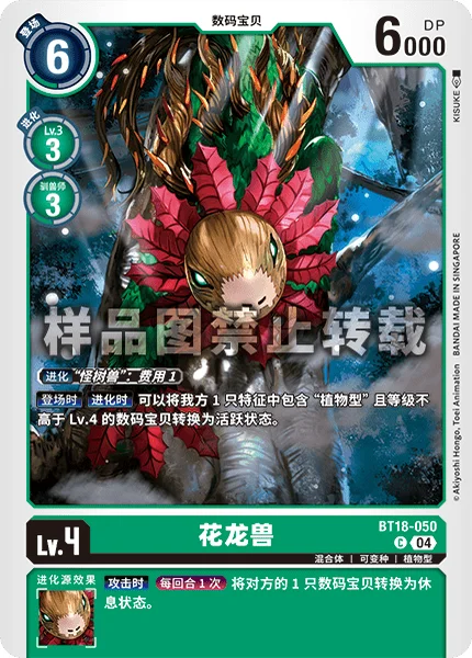 On Play When Digivolving 1 of your level 4 or lower Digimon with [Plant] or [Vegetation] in any of its traits may unsuspend.
