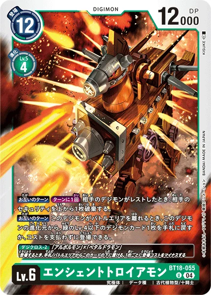 All Turns When this Digimon would leave the battle area, from this Digimon's digivolution cards, you may return to the hand or play without paying the cost 1 level 4 or lower green Digimon card.