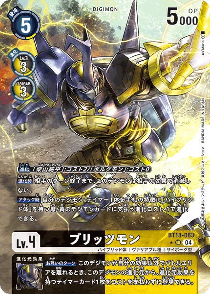 When Attacking 1 of your Digimon or Tamers may digivolve into a black or yellow Digimon card with the [Hybrid] trait in the hand with the digivolution cost reduced by 1.