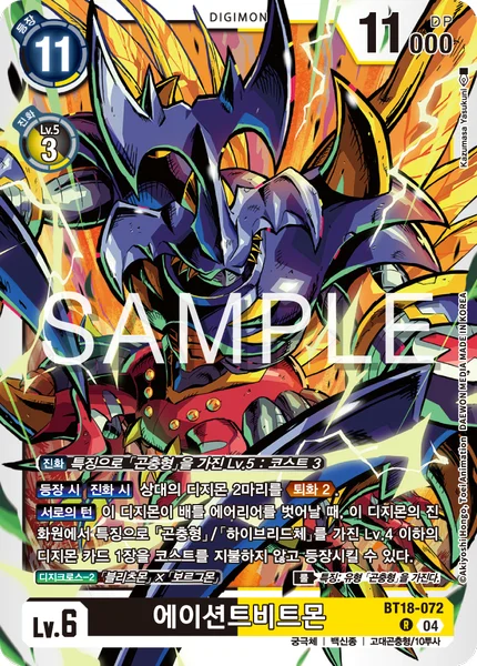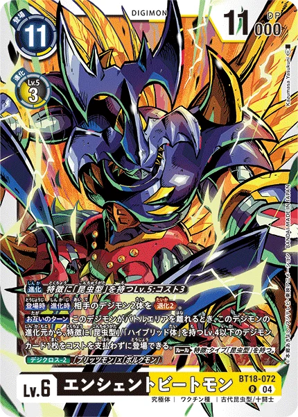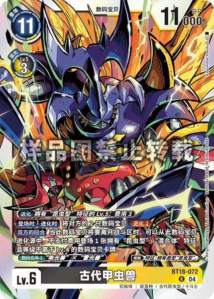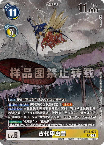 All Turns When this Digimon would leave the battle area, you may play 1 level 4 or lower Digimon card with the [Insectoid] or [Hybrid] trait from this Digimon's digivolution cards without paying the cost. Rule Trait: Has [Insectoid] Type.