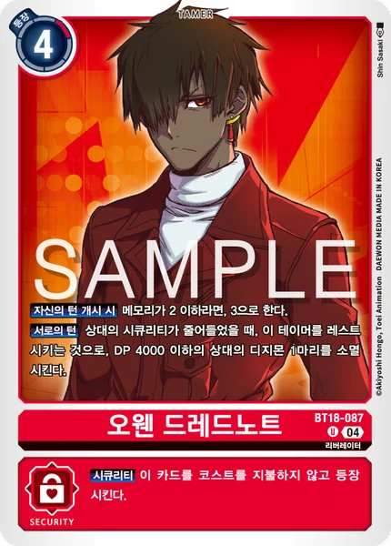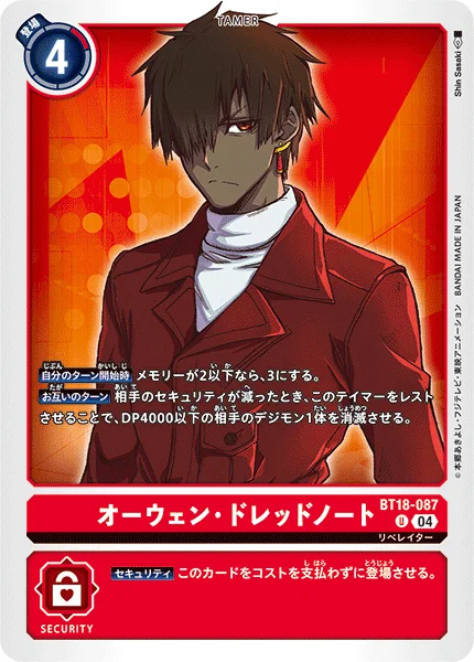 All Turns When your opponent's security stack is removed from, by suspending this Tamer, delete 1 of your opponent's Digimon with 4000 DP or less.