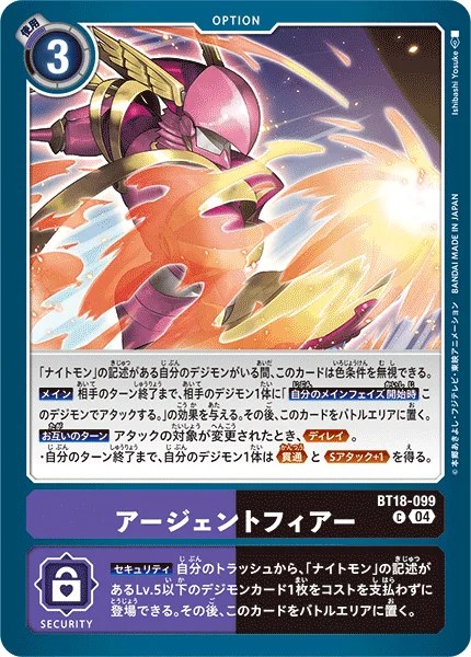 All Turns When attack targets change, Delay. ・1 of your Digimon gains Piercing and Security A. +1 until the end of your turn.