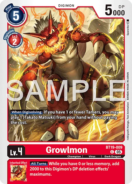 When Digivolving If you have 1 or fewer Tamers, you may play 1 [Takato Matsuki] from your hand without paying the cost.