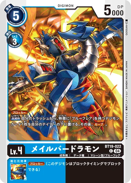 On Deletion You may place 1 Digimon card with the [Blue Flare] trait from your trash under any of your Tamers. Then, Save.
