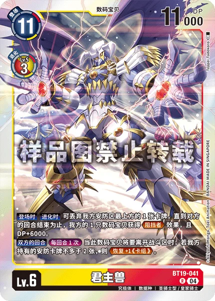 On Play When Digivolving By trashing your top security card, 1 of your Digimon gains Blocker and gets +6000 DP until the end of your opponent's turn.