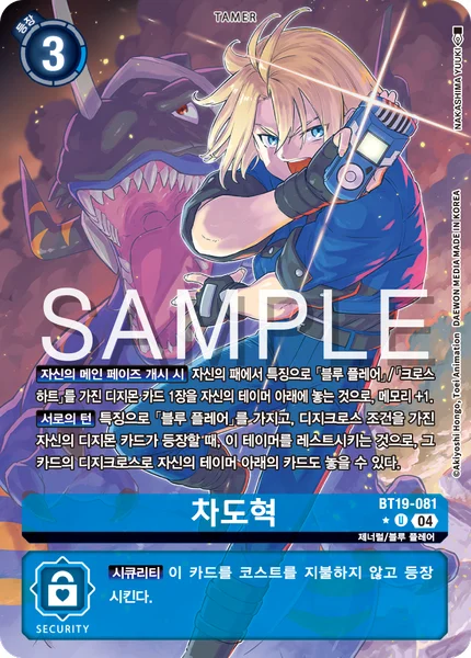 All Turns When any of your [Blue Flare] trait Digimon cards with DigiXros requirements would be played, by suspending this Tamer, cards from under your Tamers can also be placed for their DigiXros.