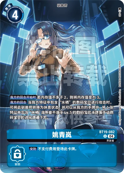 Your Turn When one of your Digimon with [Aqua] or [Sea Animal] in any of its traits attacks, by suspending this Tamer, you may place 1 level 5 or lower Digimon card with [Aqua] or [Sea Animal] in any of its traits from your hand as its bottom digivolution card.
