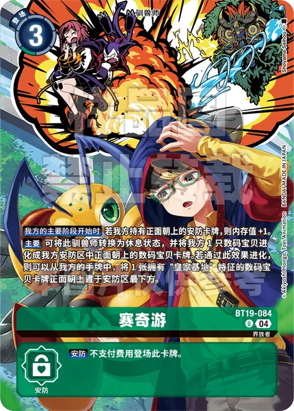 Main By suspending this Tamer, 1 of your Digimon may digivolve into a Digimon card in your face-up security cards. If this effect digivolved, you may place 1 Digimon card with the [Royal Base] trait from your hand face up as the bottom security card.