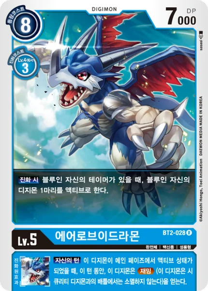 When Digivolving If you have a blue Tamer in play, unsuspend 1 of your blue Digimon.