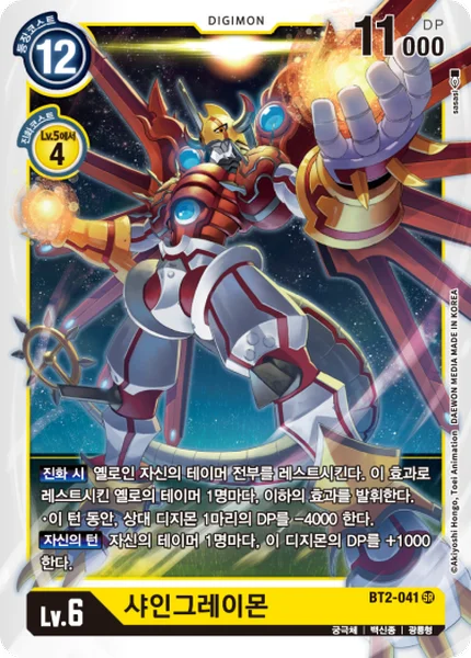 When Digivolving Suspend all of your yellow Tamers. For each Tamer you suspend this way, activate the following effect:・1 of your opponent's Digimon gets -4000 DP for the turn.Your Turn This Digimon gets +1000 DP for each Tamer you have in play.