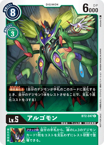 [BT2-047 Argomon] and [BT3-103 Hidden Potential Discovered!] allow green decks to easily reduce digivolution costs to zero, resulting in play patterns that are much faster than we anticipated. To bring the speed of green decks in line with other colors, we’re restricting these cards to a single copy per deck.