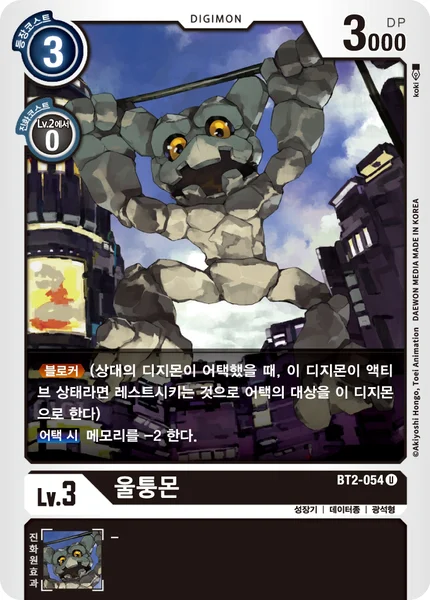 Blocker (When an opponent's Digimon attacks, you may suspend this Digimon to force the opponent to attack it instead.)When Attacking Lose 2 memory.