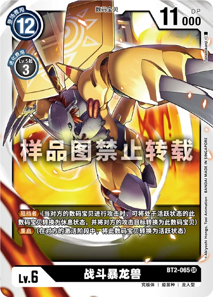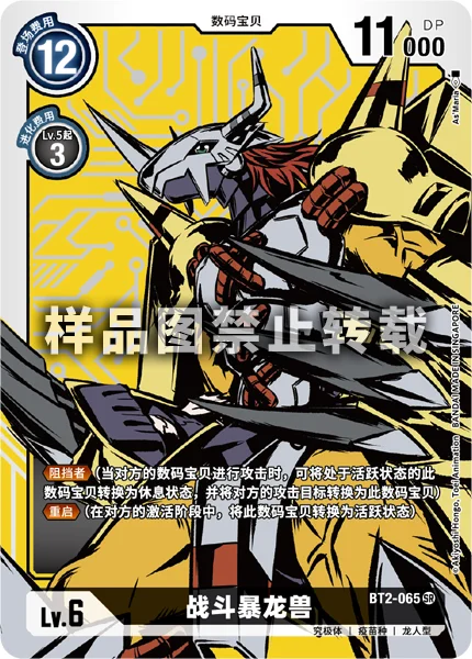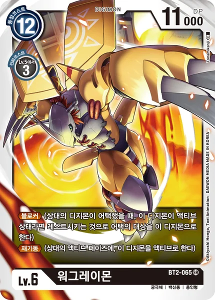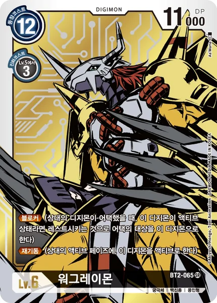 Blocker (When an opponent's Digimon attacks, you may suspend this Digimon to force the opponent to attack it instead.)Reboot (Unsuspend this Digimon during your opponent's unsuspend phase.)